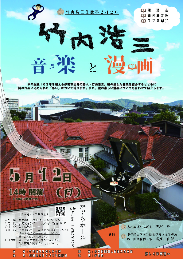お知らせ竹内浩三生誕祭2024 ―竹内浩三音楽と漫画―(2024.5.12)(主催: 竹内浩三を伝えゆく会)